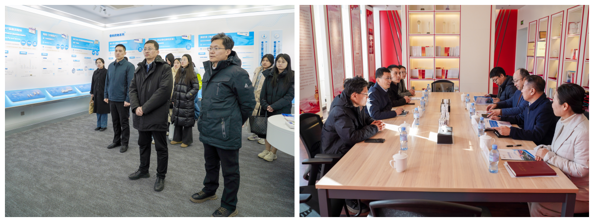 在青岛国信制药有限公司,团队一行了解了企业发展历程、产业布局与创新成果,听取公司对学院人才培养的意见建议。公司副总裁栾东阳、行政总监李季、研发总监刘振玉、总裁办副总监赵爽介绍了公司用人需求和科研成果转化需要,就公司以“笃信健行”党建品牌和“红船精神”红色引擎推动党建业务深度融合的实践经验进行了交流。座谈中,双方就党支部共建、科研协同、人才培养等达成共识,表示将加快构建“资源共享、优势互补、发展互促”的校企合作机制,推动党建优势转化为服务产业与育人的实际成效。