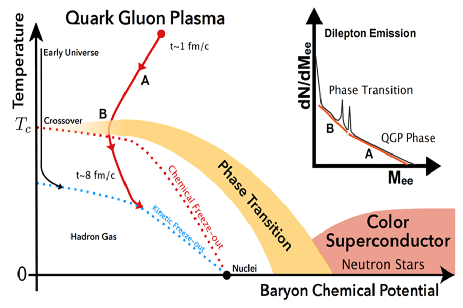 两个重离子(如金核)以接近光速的速度对撞,会创造出一种极高温和高能量密度的环境,从而使构成质子和中子的基本单元—夸克和胶子解禁闭,产生一种叫做夸克-胶子等离子体(Quark-Gluon Plasma,QGP)的新物态。这种特殊的物质形态被认为存在于大爆炸后的早期宇宙,研究其特性是高能核物理领域的重要物理目标。实验上直接测量QGP温度这一关键热力学参数的手段十分有限。通过末态强子谱和直生光子等提取的温度会受到强相互作用及蓝移效应的影响。通过测量正负电子对的不变质量,可不受上述效应的干扰直接提取温度。