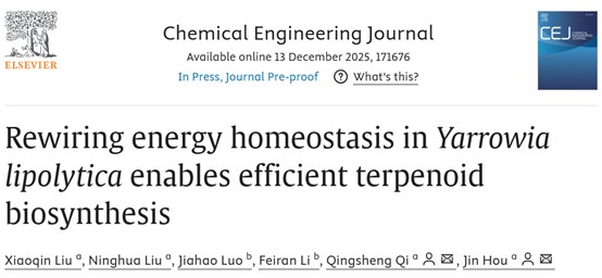 近日,山东大学微生物改造技术全国重点实验室祁庆生/侯进团队在Chemical Engineering Journal 期刊上发表了题为“Rewiring energy homeostasis inYarrowia lipolyticaenables efficient terpenoid biosynthesis”的研究成果。该研究通过全局代谢重塑,将碳流从“代谢溢流”转向高效合成β-法尼烯,最终实现82.1 g/L的产量,创下解脂耶氏酵母中萜类化合物的最高生产纪录。山东大学微生物改造技术全国重点实验室博士后刘晓芹为第一作者,祁庆生教授和侯进教授为通讯作者,山东大学微生物改造技术全国重点实验室为第一完成单位和通讯作者单位,清华大学李斐然老师为该工作提供了重要帮助。