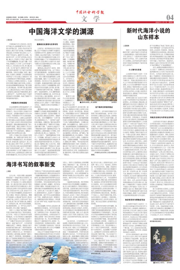 近日,人文艺术研究院张志忠教授撰写的题为“中国海洋文学的渊源”的学术文章在《中国社会科学报》2026年第3293期发表。