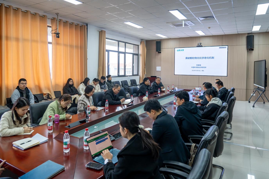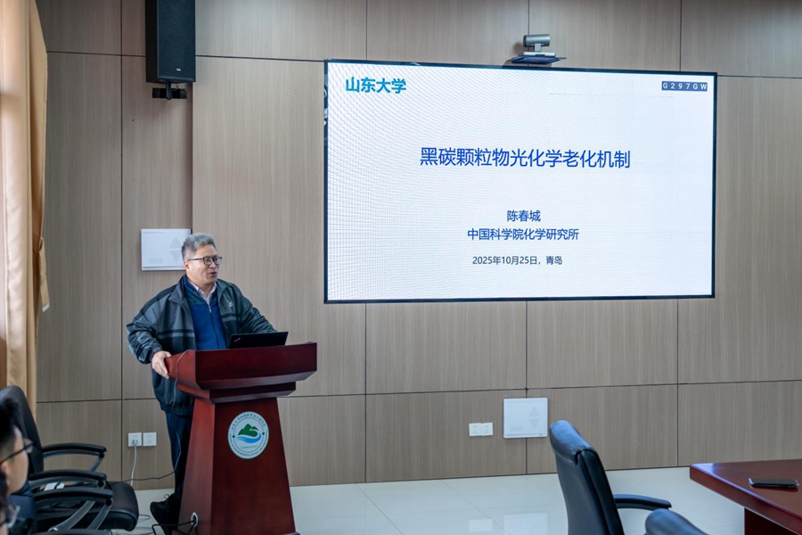 10月25日,环境科学与工程学院举办山东大学“美丽中国”讲坛(2025年第15期,总第36期)。中国科学院化学研究所研究员陈春城以“黑碳颗粒物光化学老化机制”为题作主题报告并展开交流。讲坛由学院院长杜林主持。