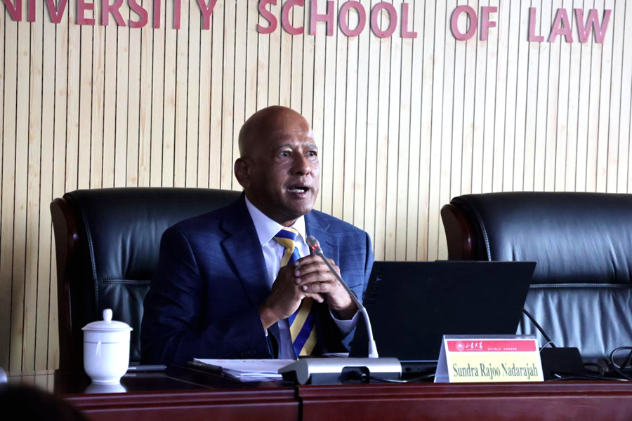 11月4日,山东大学法学院“涉外法治人才培养高端论坛”第五十四期于青岛校区华岗苑举办。亚洲多元争议解决研究院主席Datuk Sundra Rajoo Nadarajah以“Overview of International Arbitration”为题作专题讲座。讲座由山东大学法学院副教授迟德强主持,助理研究员程龙担任与谈人。来自省政府驻京办、京鲁专家委员会、青岛市律协、山东睿扬律师事务所等单位的有关领导、专家,以及我院师生共九十余人参加了本次活动。