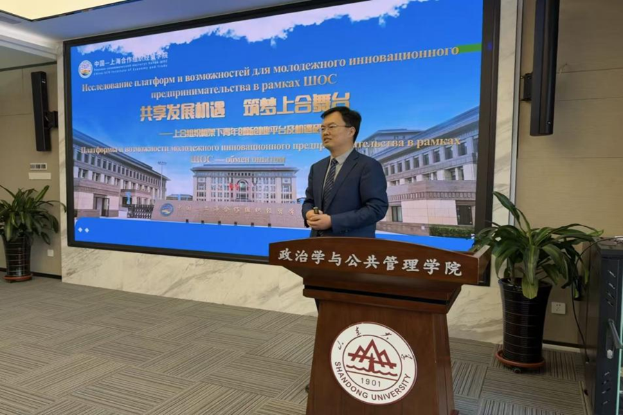 12月25日,由山东大学政治学与公共管理学院、山东大学上海合作组织研究院、山东大学公共安全研究院、中国—上海合作组织经贸学院联合主办的“合作与发展”系列讲座第三十八期在青岛校区举办。本期讲座特邀中国—上海合作组织经贸学院院长、多边经贸合作与国际人才培养领域专家郑师担任主讲嘉宾,主题为“共享发展机遇 筑梦上合舞台——上合组织框架下青年创新创业平台及机遇”。山东大学特聘教授、泰山学者特聘专家、上海合作组织研究院执行院长盛力主持讲座,政管学院及法学院部分师生参加了本次学术交流。