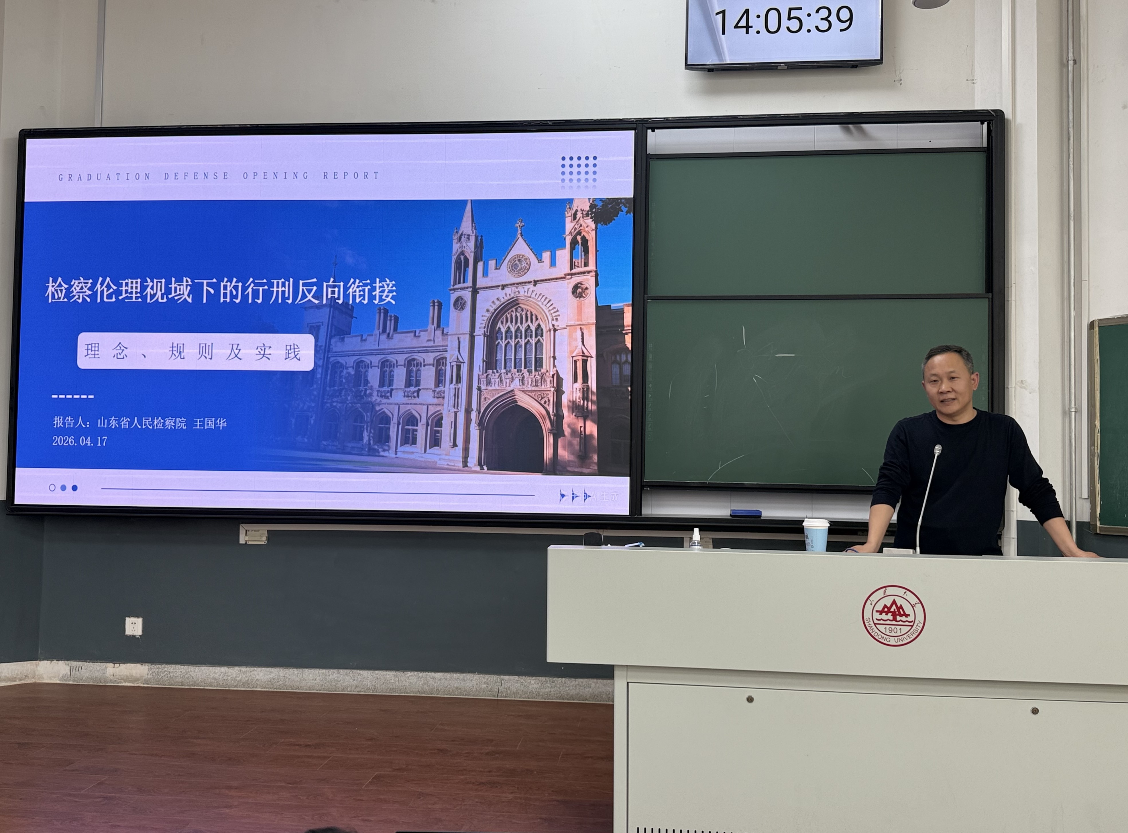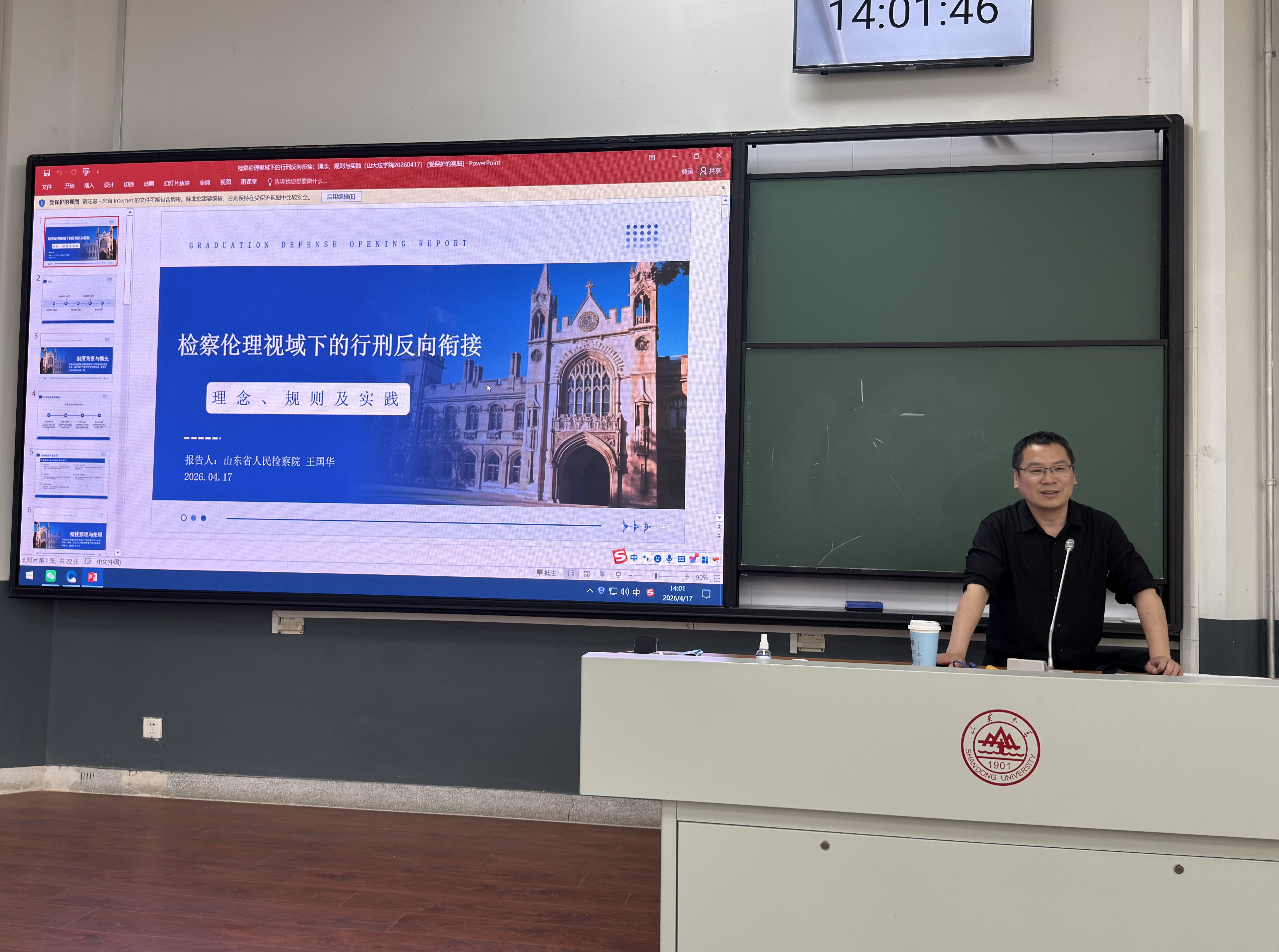 4月17日,山东大学法学院举办检校合作“双师课堂”第二讲。本期课堂邀请到了山东大学法学院2004届宪法学与行政法学硕士,山东省人民检察院第七检察部副主任、三级高级检察官王国华担任主讲人,山东大学法学院副院长、教授郑智航主持活动。