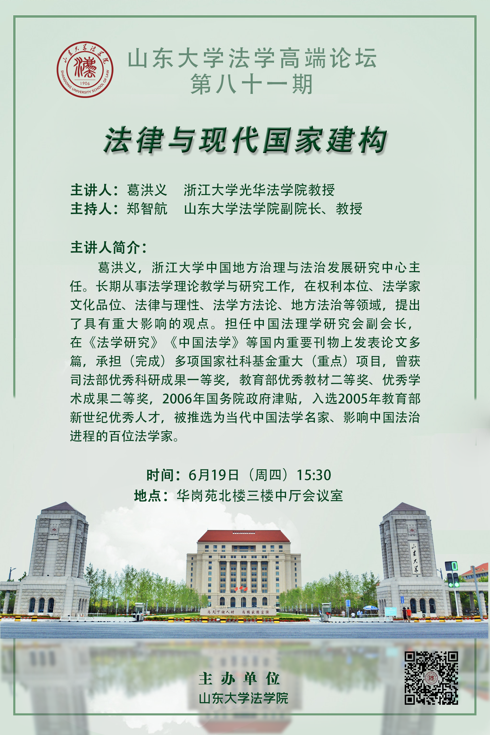 【讲座预告】山东大学法学高端论坛第八十一期:法律与现代国家建构