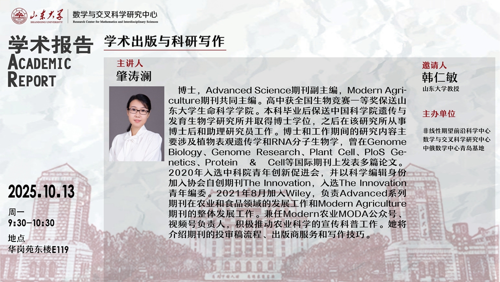 【讲座预告】学术出版与科研写作