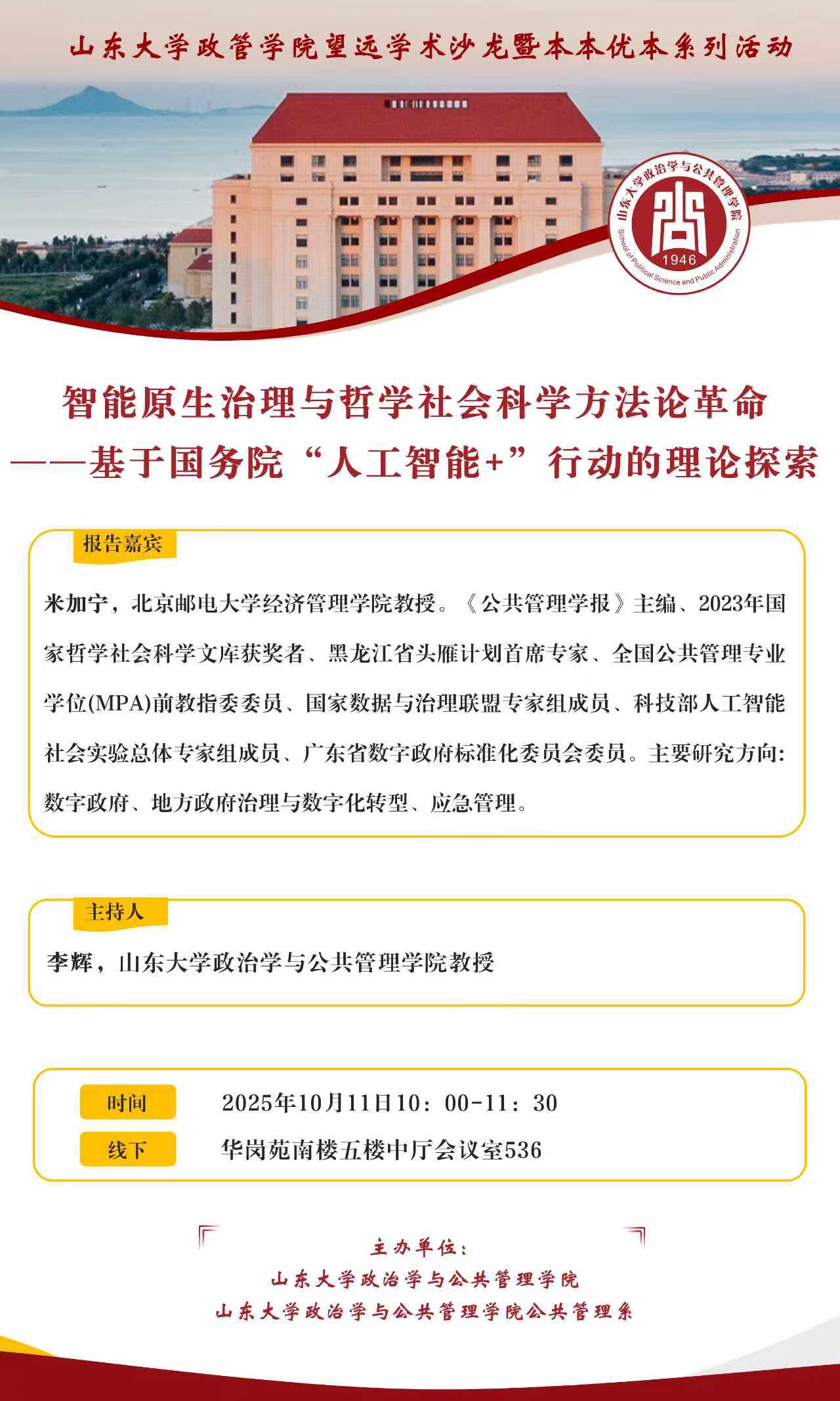 【讲座预告】智能原生治理与哲学社会科学方法论革命——基于国务院“人工智能+”行动的理论探索