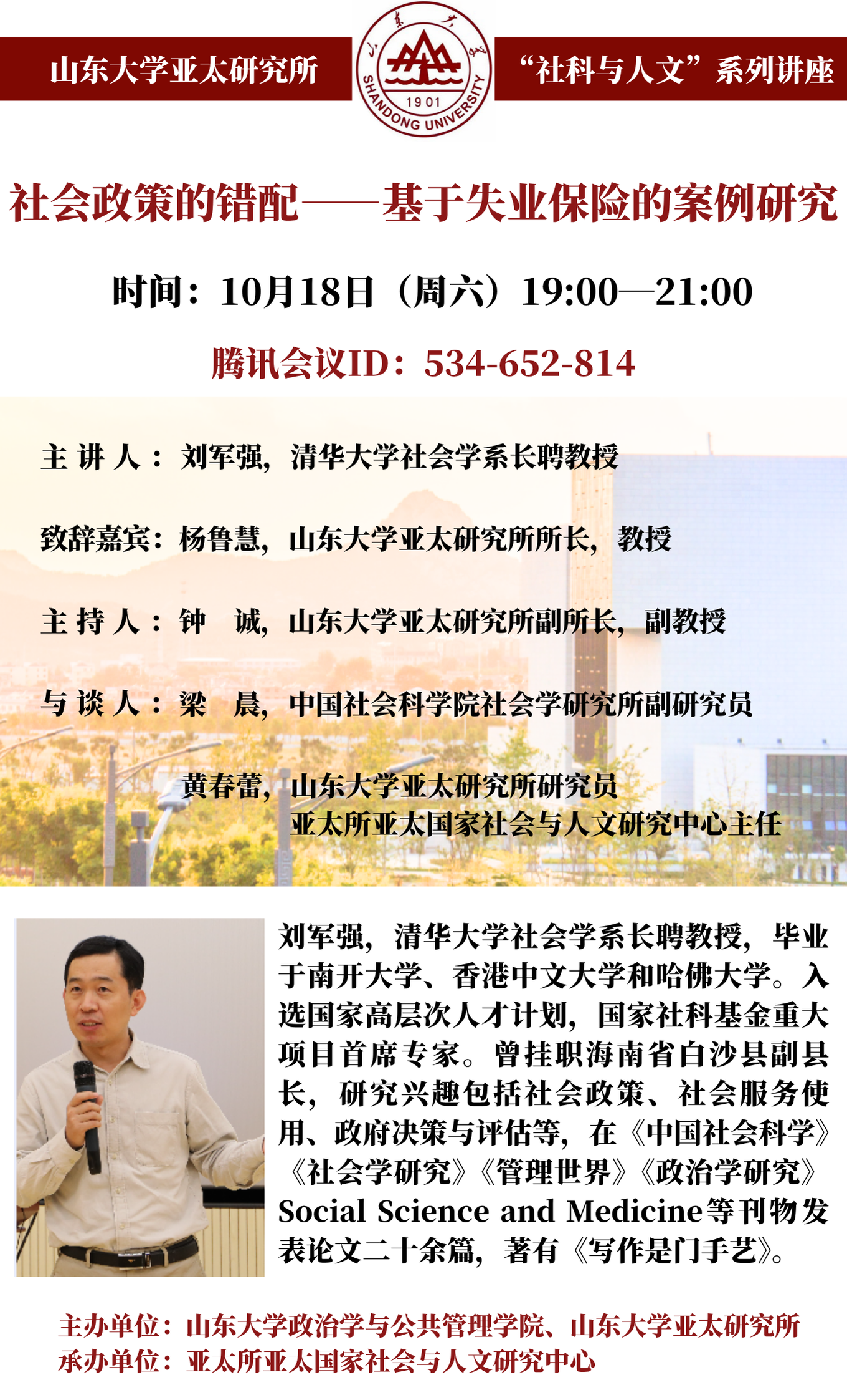 【讲座预告】社会政策的错配——基于失业保险的案例研究