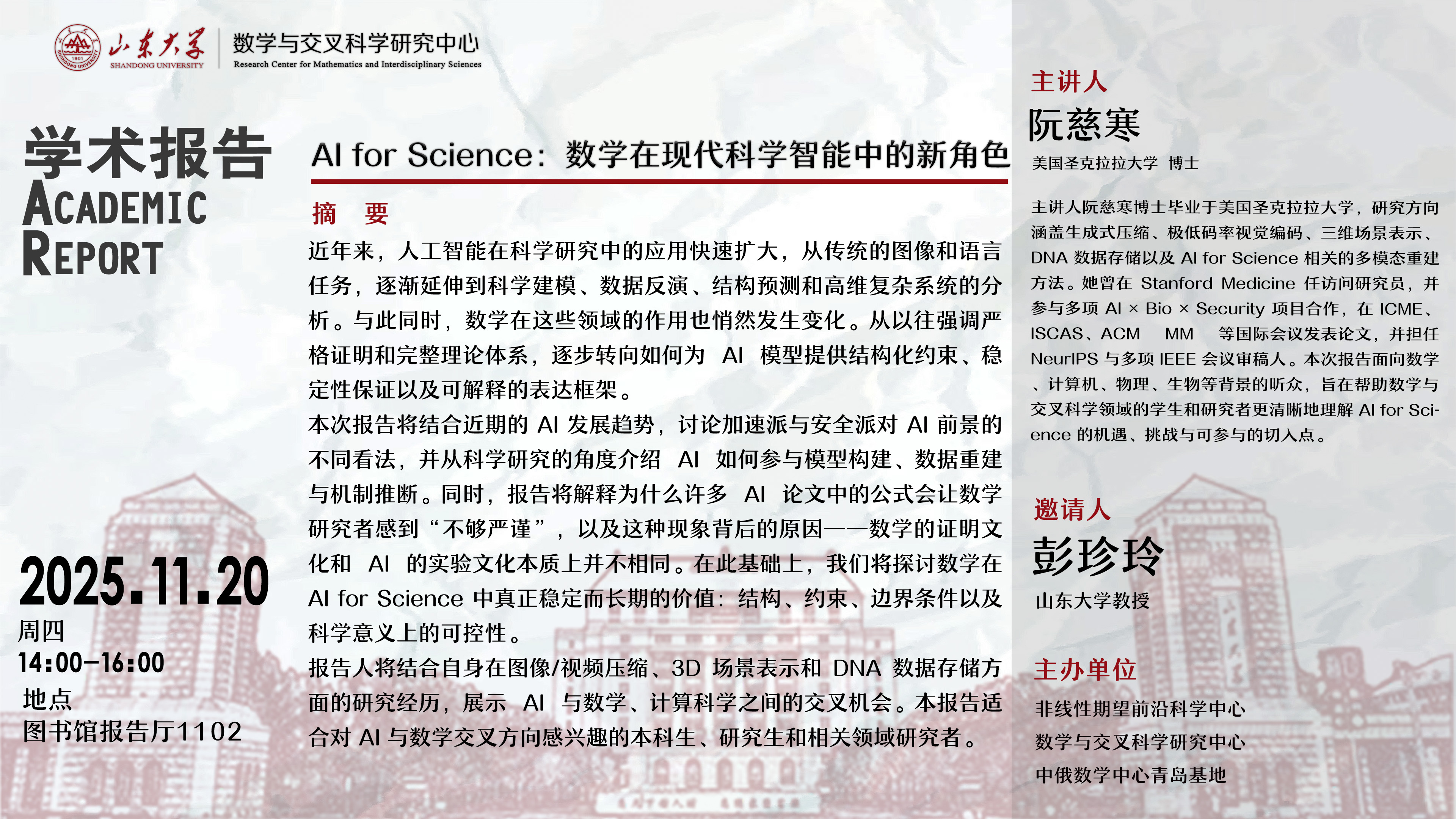【讲座预告】AI for Science:数学在现代科学智能中的新角色