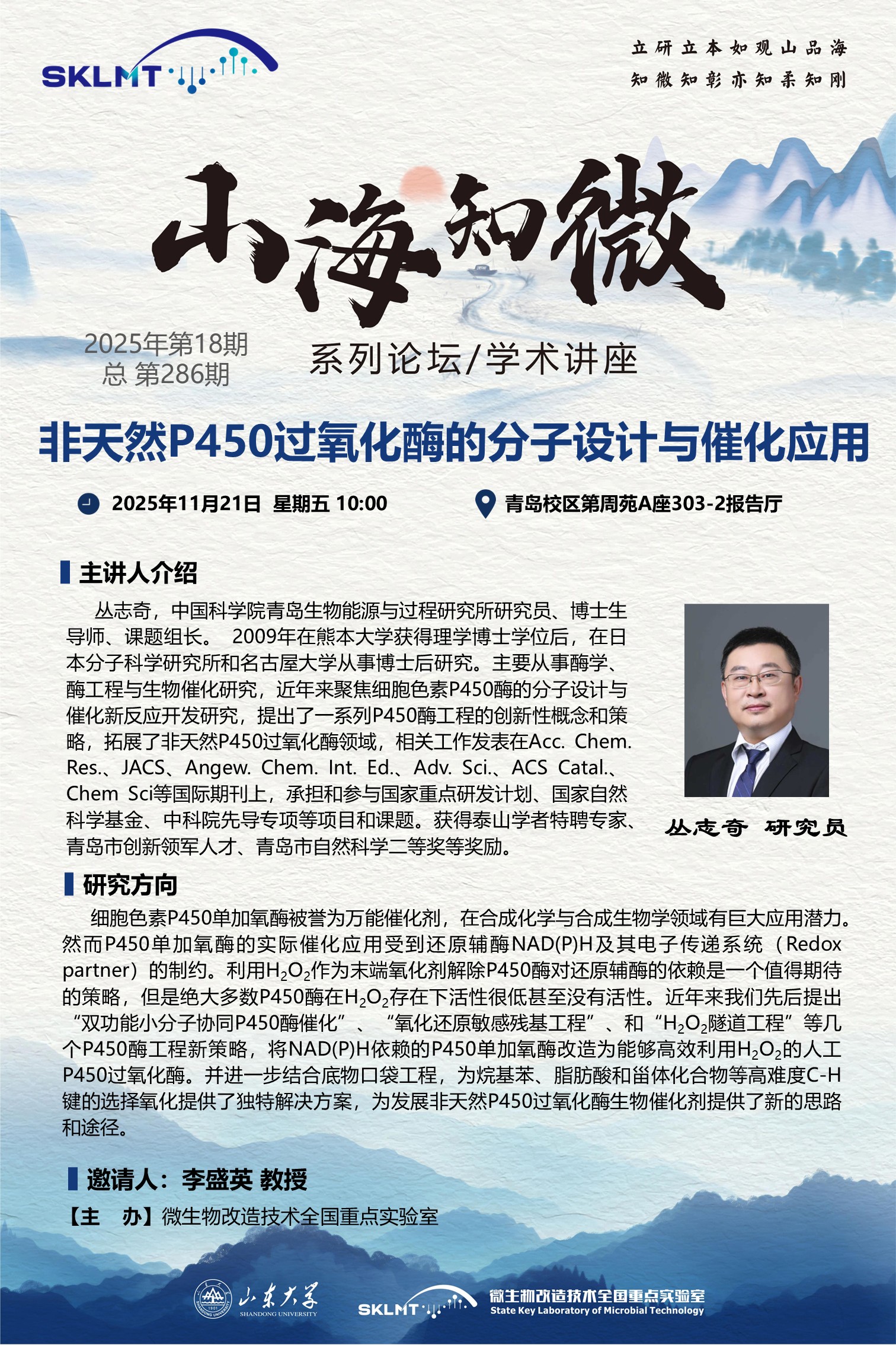 【山海知微】丛志奇:非天然P450过氧化酶的分子设计与催化应用