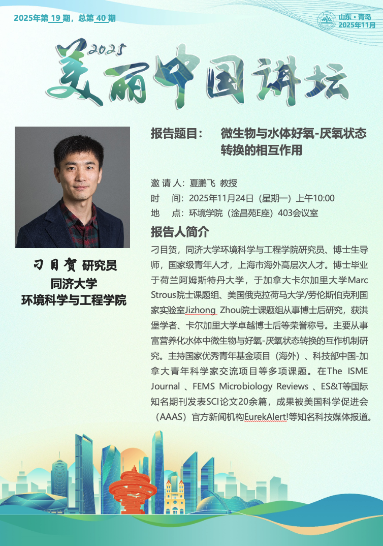 【学术预告】2025年美丽中国讲坛:微生物与水体好氧-厌氧状态转换的相互作用
