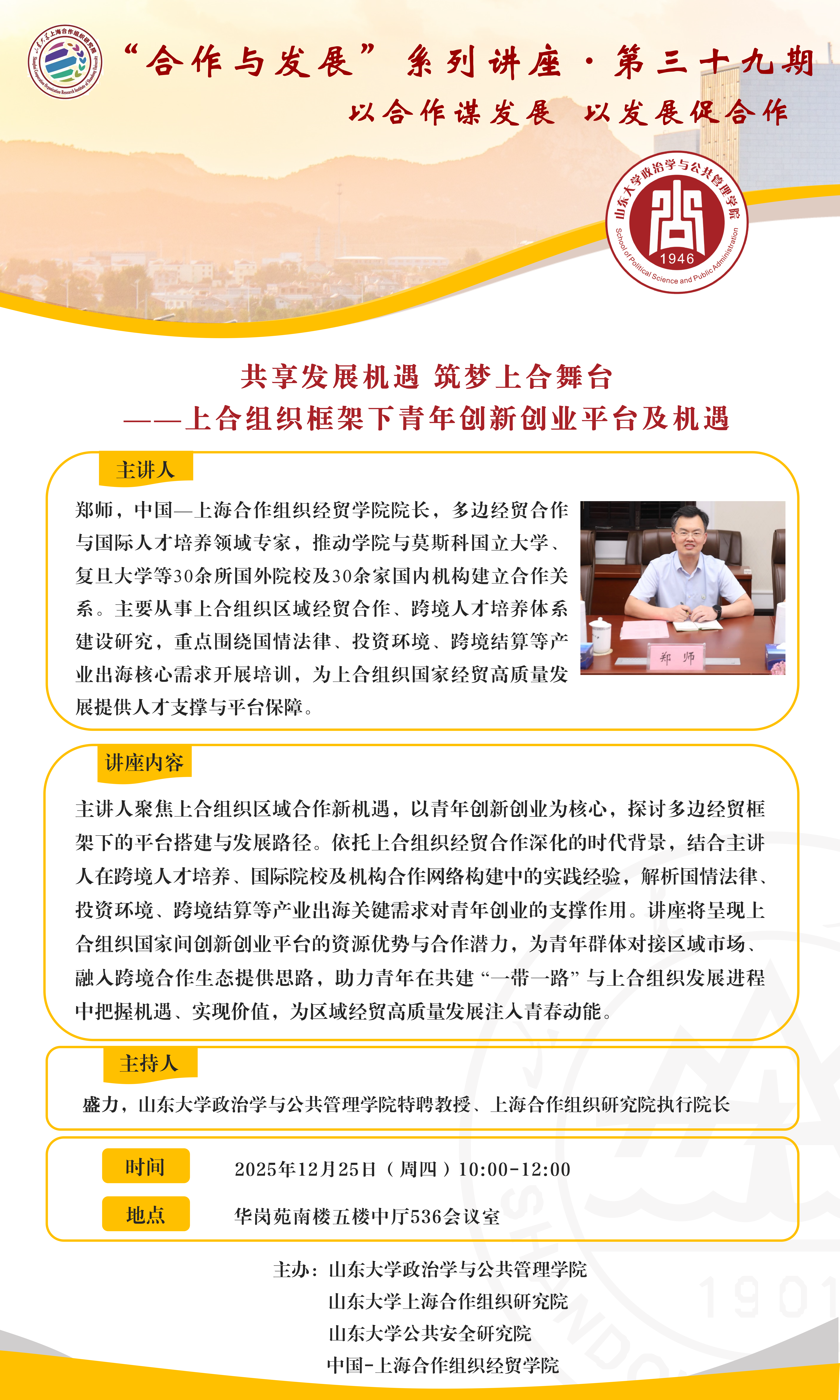 【学术预告】共享发展机遇 筑梦上合舞台——上合组织框架下青年创新创业平台及机遇