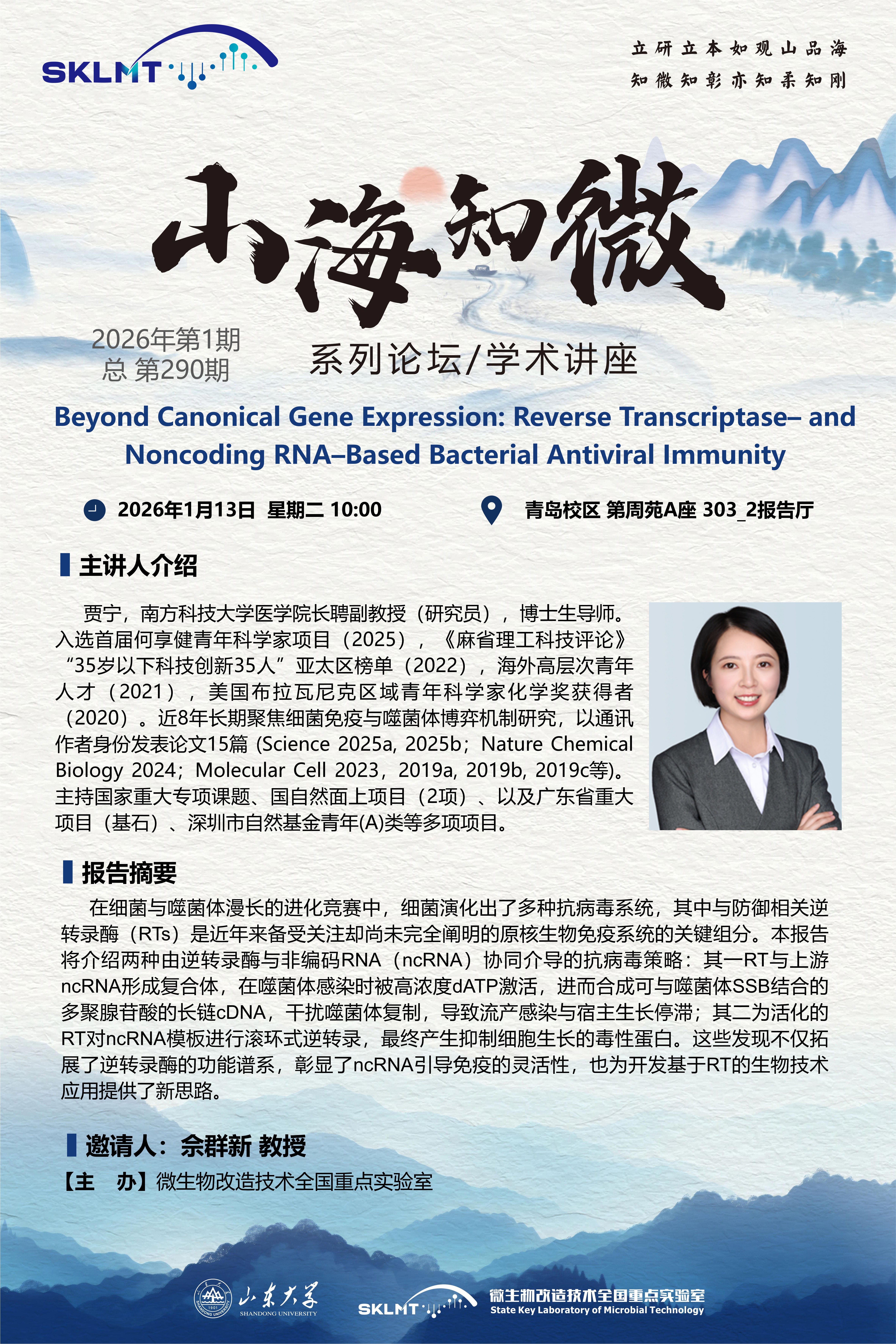 【学术预告】Beyond Canonical Gene Expression: Reverse Transcriptase- and Noncoding RNA-Based Bacterial Antiviral lmmunity