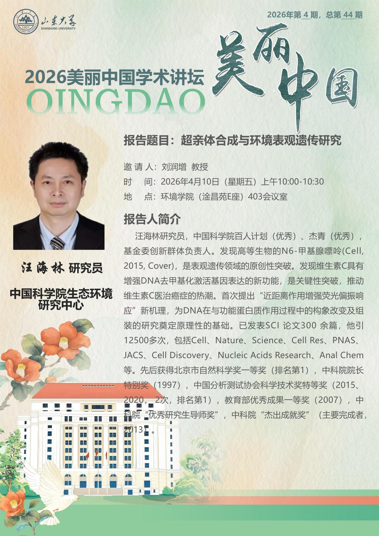 【讲座预告】美丽中国讲坛2026年第4期:超亲体合成与环境表观遗传研究