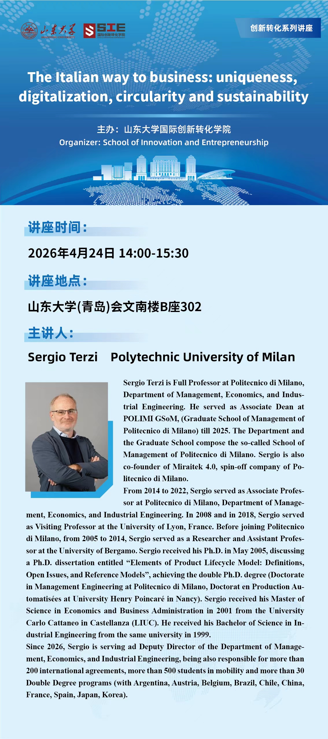 【讲座预告】The Italian way to business: uniqueness,digitalization, circularity and sustainability