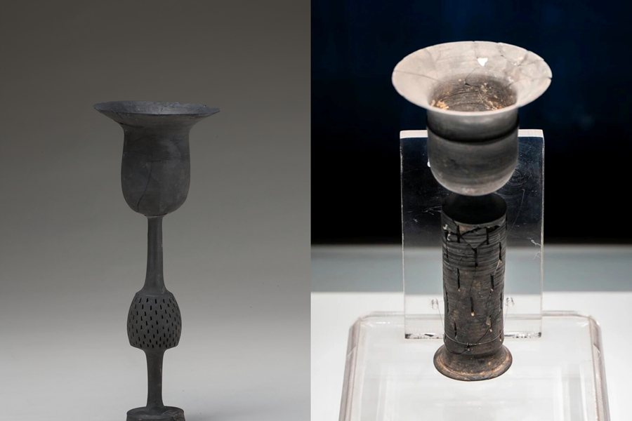 同属龙山文化时期的蛋壳黑陶高柄杯