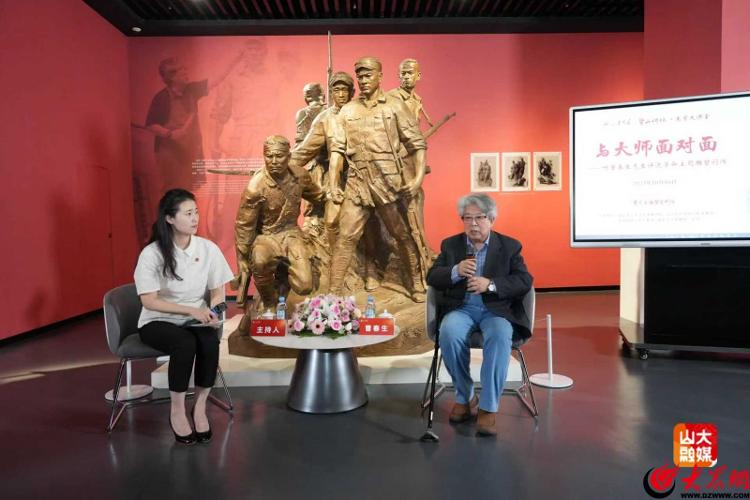 10月16日下午,山东大学兼职讲席教授、中央美术学院教授、著名雕塑艺术家曹春生先生做客“鳌山讲坛”暨“美育大课堂”,以“与大师面对面——听曹春生先生讲述革命主题雕塑创作”为题与师生展开深入交流。山东大学校长助理、青岛校区党工委书记邢占军出席活动。