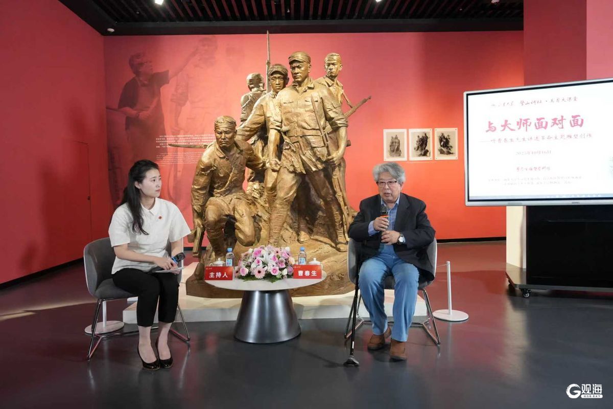 活动中,曹春生结合自身艺术创作与求学经历,深情回顾了自己的艺术道路,分享了刘开渠、王临乙等恩师对其艺术理念与教育生涯的深刻影响,讲述了创作领袖塑像背后的历史细节与初心使命。在谈及《狼牙山五壮士》等革命主题雕塑时,曹春生结合今年中国人民抗日战争暨世界反法西斯战争胜利80周年的时代背景,表示艺术创作不仅是艺术表达,更是铭记历史、传承民族精神的载体,让与会师生感受到了家国情怀与文化自信。