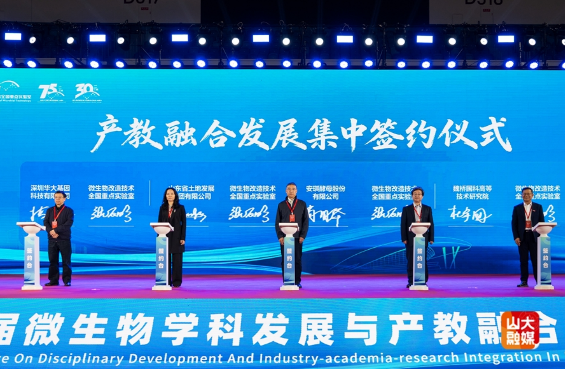 其间,“产教融合发展集中签约仪式”举行,山东大学与深圳华大基因股份有限公司、山东省土地发展集团有限公司、安琪酵母股份有限公司、魏桥国科高等技术研究院签订战略合作协议。
