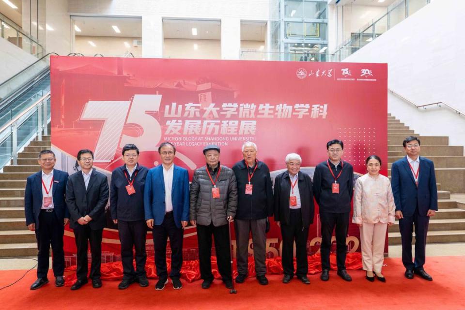 与会嘉宾在青岛校区博物馆为“山东大学微生物学科发展历程展”揭幕。