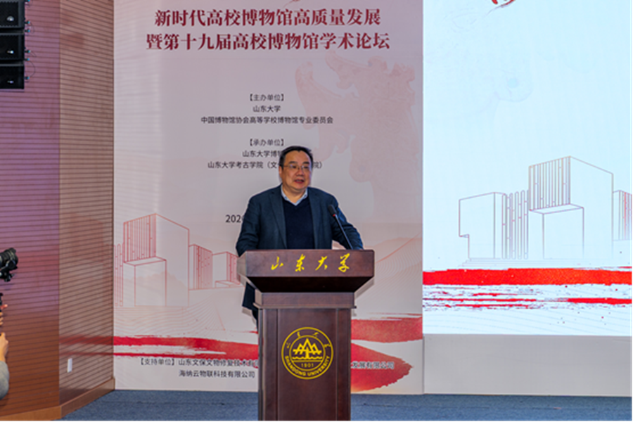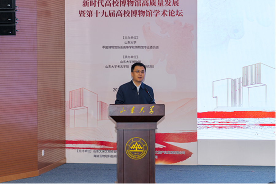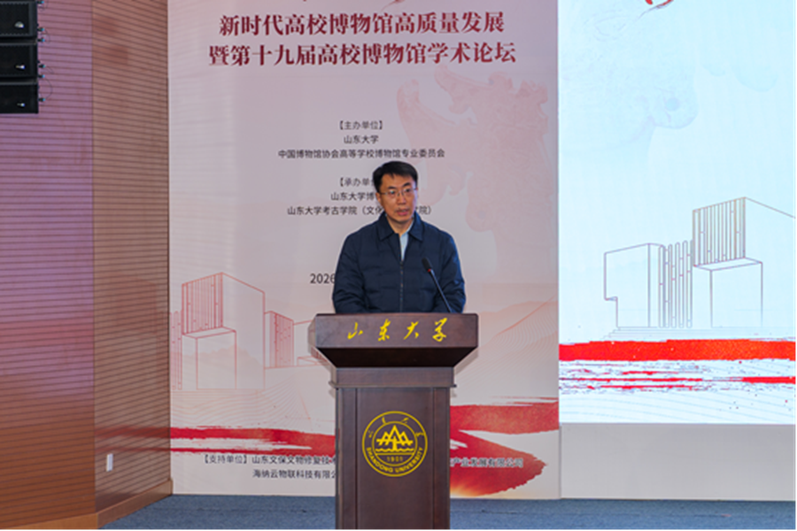 为推动高校博物馆高质量创新发展,共探博物馆育人使命与创新路径,1月10日,在山东大学博物馆成立30周年之际,由山东大学、中国博物馆协会高等学校博物馆专业委员主办,山东大学博物馆、山东大学考古学院(文化遗产研究院)承办的“启智赋彩:新时代高校博物馆高质量发展暨第十九届高校博物馆学术论坛”在山东大学青岛校区博物馆开幕。