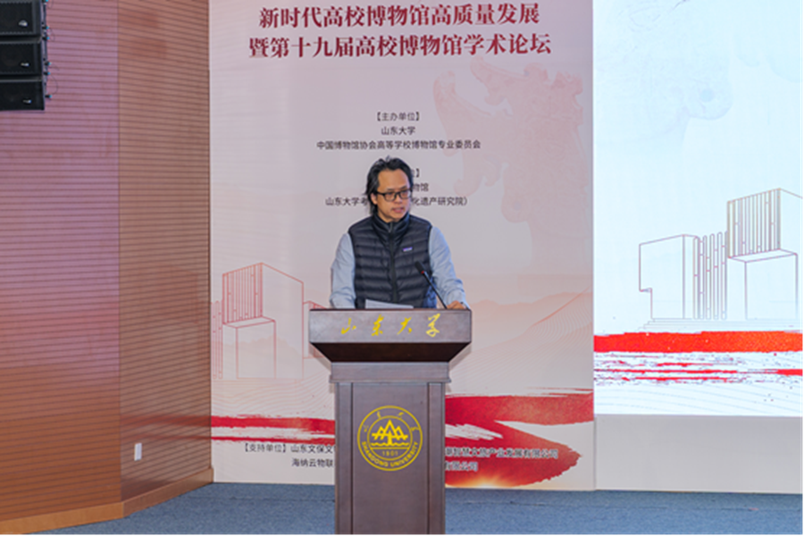 方辉回顾了山东大学博物馆的百年发展脉络,从1901年办学章程中提出设立博物院的构想,到1995年正式成立、2020年获评国家一级馆、2021年青岛校区新馆展览开幕的历程。山东大学博物馆馆藏资源丰富,近五年已举办近40个展览,在学科支撑、人文教育等方面成效显著,深受社会各界认可。同时,他也直面高校博物馆普遍面临的经费支撑不足、管理体制不健全、自主权有限等共性难题,希望高校同仁积极建言献策,通过本次论坛集思广益,交流经验,共同助力高校博物馆突破发展瓶颈、实现高质量进步。
