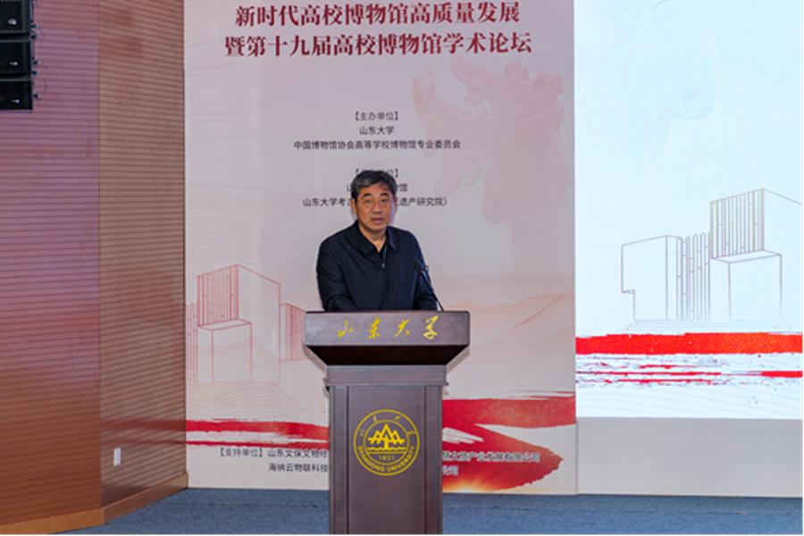 李向阳表示,山东大学文史底蕴丰厚,在创办初期就在山东大学堂章程中明确提出建设“博物院”的规划。他回顾了山东大学博物馆自1995年正式建馆后30年来的发展历程。他强调,山东大学博物馆于2020年获评首批全国高校类国家一级博物馆,现藏4.06万件文物,构建起“一亿年生物史、百万年人类史、一万年文化史、五千年文明史、一百二十年校史”的展览体系。李向阳表示,山东大学愿与高校博物馆界同仁携手,聚焦“两个结合”,深耕文化“两创”,深化合作、守正创新,共建考古文博自主知识体系,让文物活起来、让历史被看见,助力中华文化绽放更灿烂的光彩。