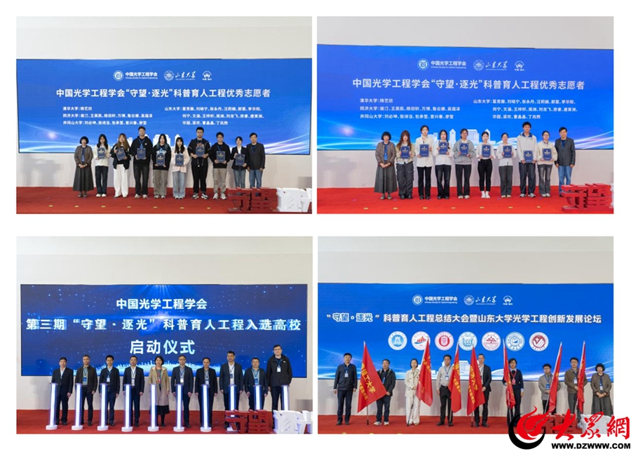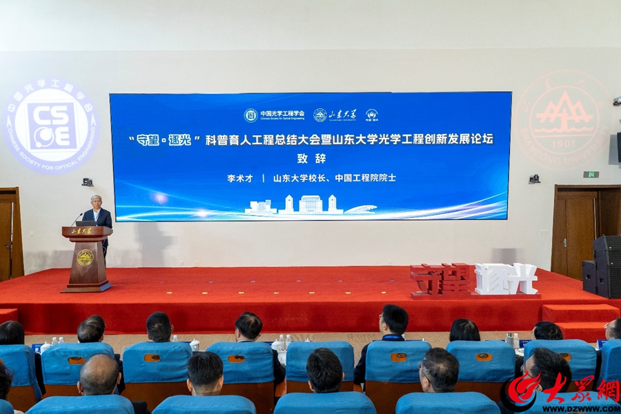 李术才在致辞中表示,八年来,山东大学作为“守望・逐光”工程项目发起单位,开展留守儿童帮扶和科普育人活动,引导大学生在志愿服务奉献中涵养家国情怀、践行使命担当,为服务国家战略和乡村振兴作出青年贡献,取得了丰硕的成果。下一步,山东大学希望与各方携手搭建更高水平的交流平台,构建更紧密的合作机制,持续做强科普育人品牌,拓展服务范围,提升帮扶实效,让科普之光照亮更多青少年成长之路;进一步汇聚创新资源,提升光学工程学科原始创新能力与核心竞争力,在关键核心技术上取得新突破,为强国建设、民族复兴伟业作出新的更大贡献。