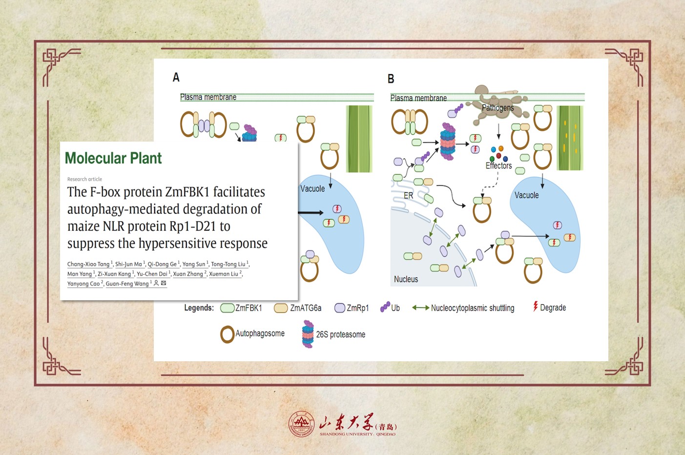 王官锋教授团队揭示玉米泛素连接酶ZmFBK1通过促进自噬以抑制玉米超敏反应的新机制