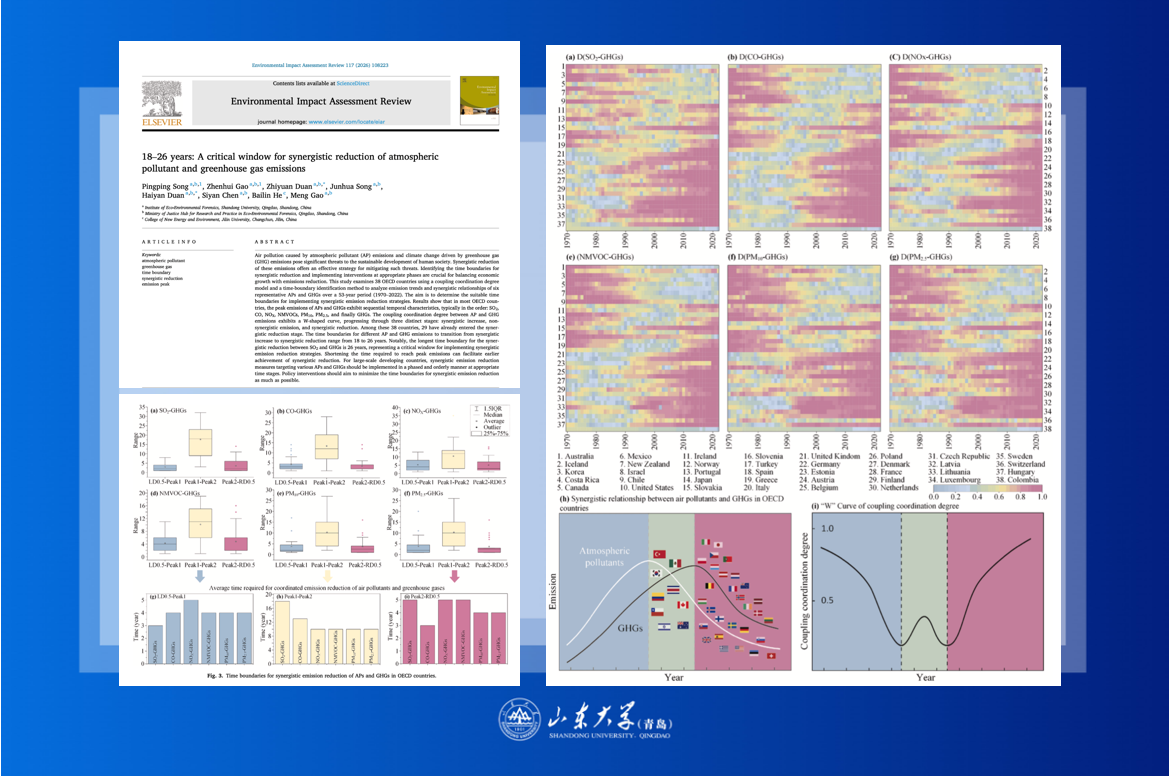 山东大学生态环境损害鉴定研究院段志远在污碳协同减排领域取得新进展,“发达国家大气污染物和温室气体达峰时间呈梯次性,先后依次为SO2、CO、NOX、NMVOC、PM10、PM2.5、GHG,污碳协同增排过渡到协同减排的时间边界为18-26年”。相关成果以“18–26years:Acriticalwindowforsynergisticreductionofatmosphericpollutanta...