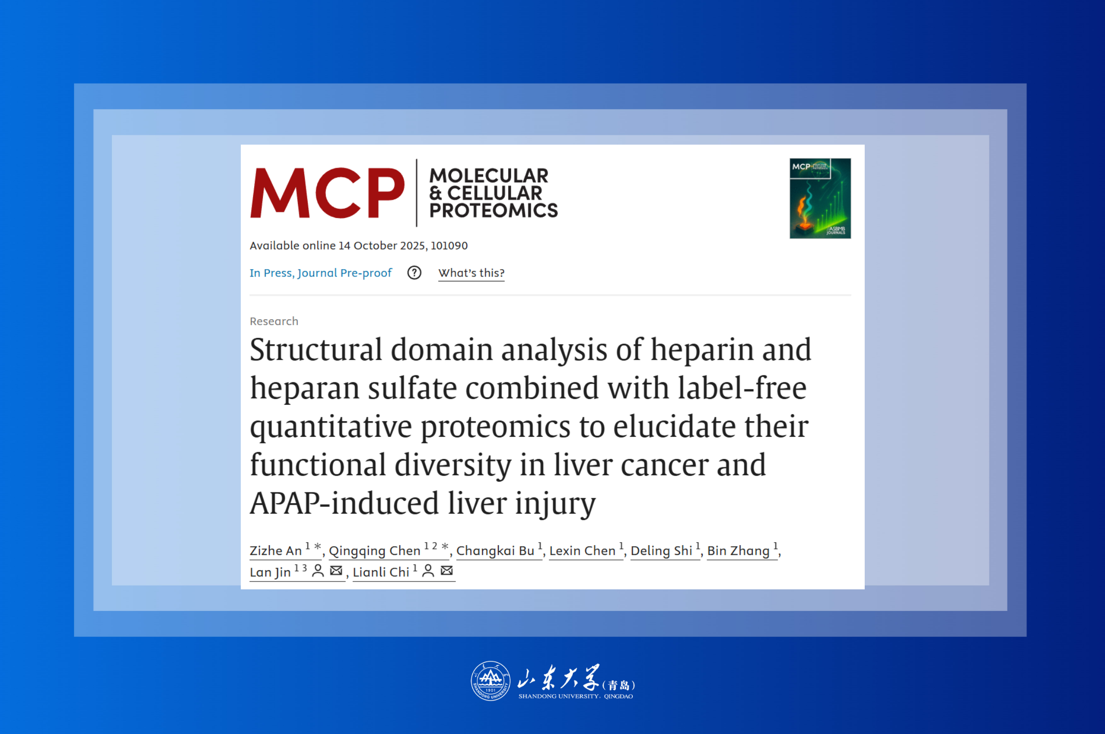 迟连利教授团队在Molecular & Cellular Proteomics发表论文