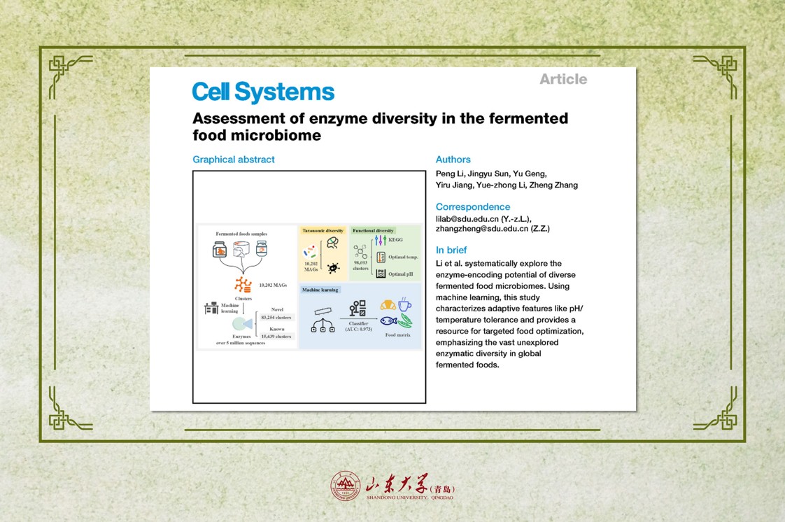 近日,山东大学微生物改造技术全国重点实验室(研究院)张正/李越中教授团队在中科院1区Top期刊Cell Systems上发表了题为“Assessment of enzyme diversity in the fermented food microbiome”的研究论文。实验室博士生李鹏和硕士生孙婧钰为共同第一作者,张正研究员和李...